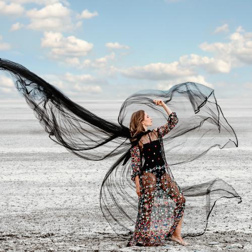 Rochie midi din tulle brodat ivoar cu maneci lungi