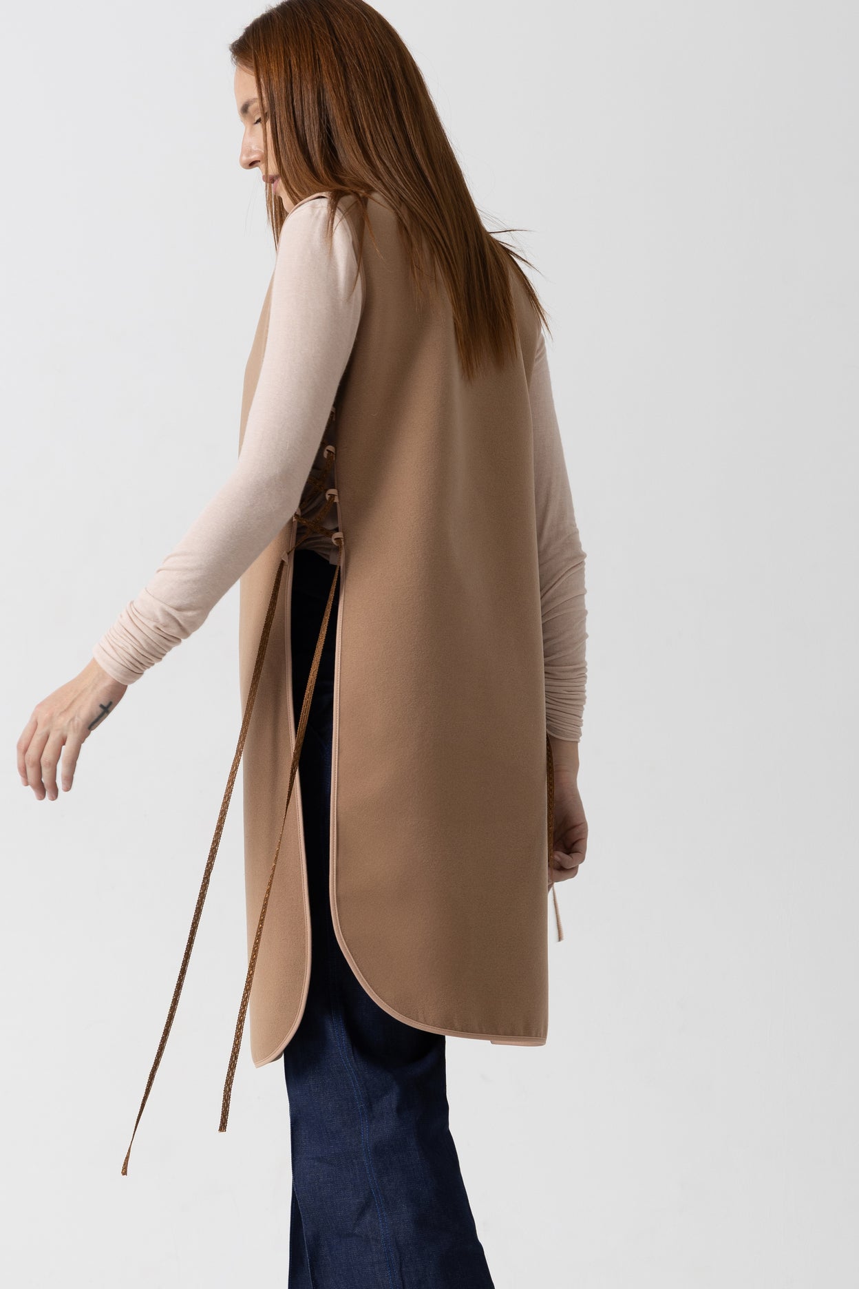 Vesta este prevăzută cu șnururi laterale reglabile, care permit ajustarea pe siluetă și adaugă un detaliu discret, funcțional. Datorită designului său curat și atemporal, se potrivește perfect ținutelor casual, office sau smart-casual, fiind o alegere inspirată pentru garderoba de zi cu zi.