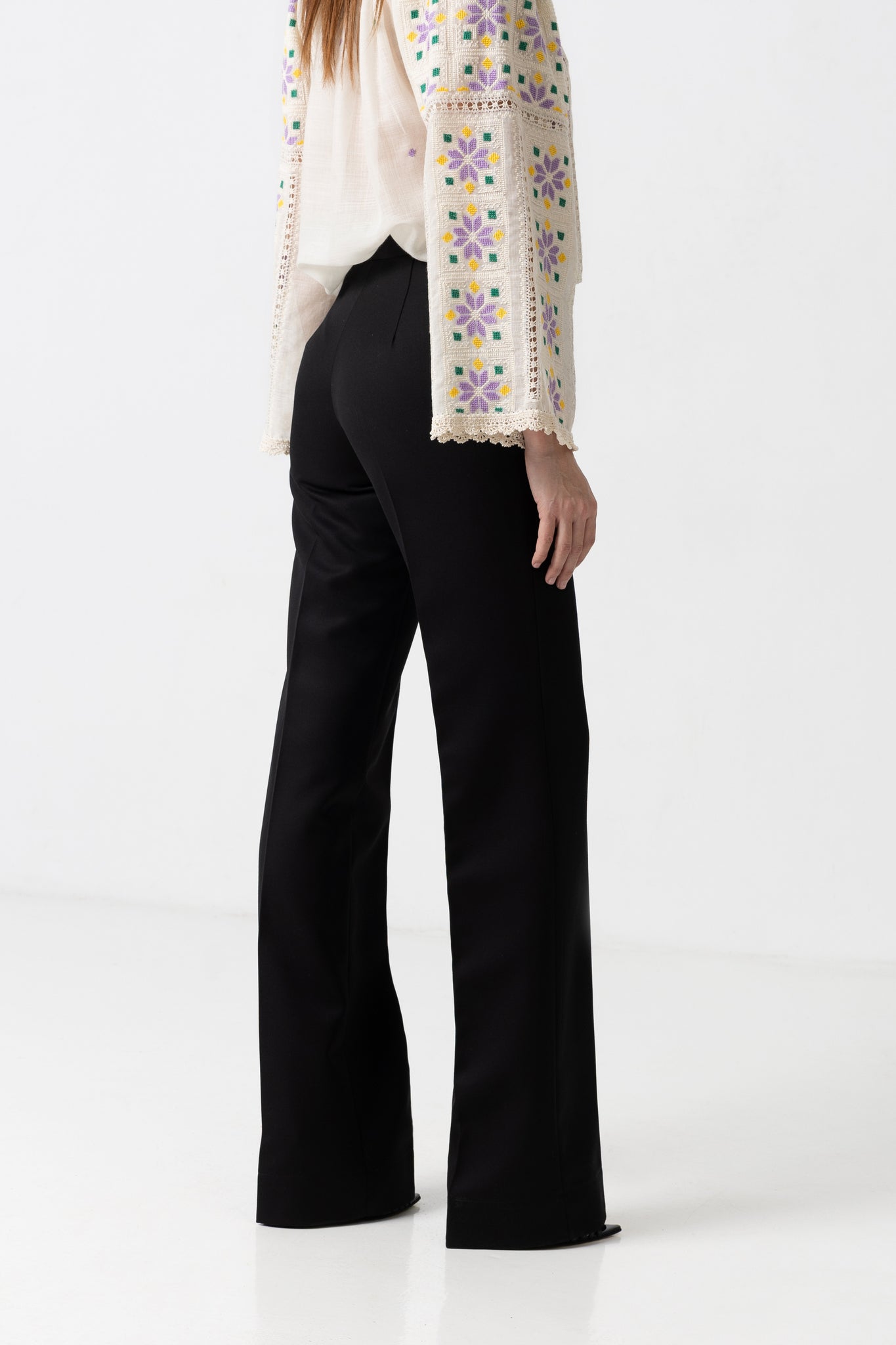 Împreună, cele două piese formează un costum sofisticat, potrivit pentru ținute office, evenimente elegante sau apariții de seară în care se dorește o prezență stilată. Combinația dintre broderia subtilă și croiala precisă transformă acest ansamblu într-o alegere ideală pentru femeia care apreciază detaliile fine și eleganța atemporală.