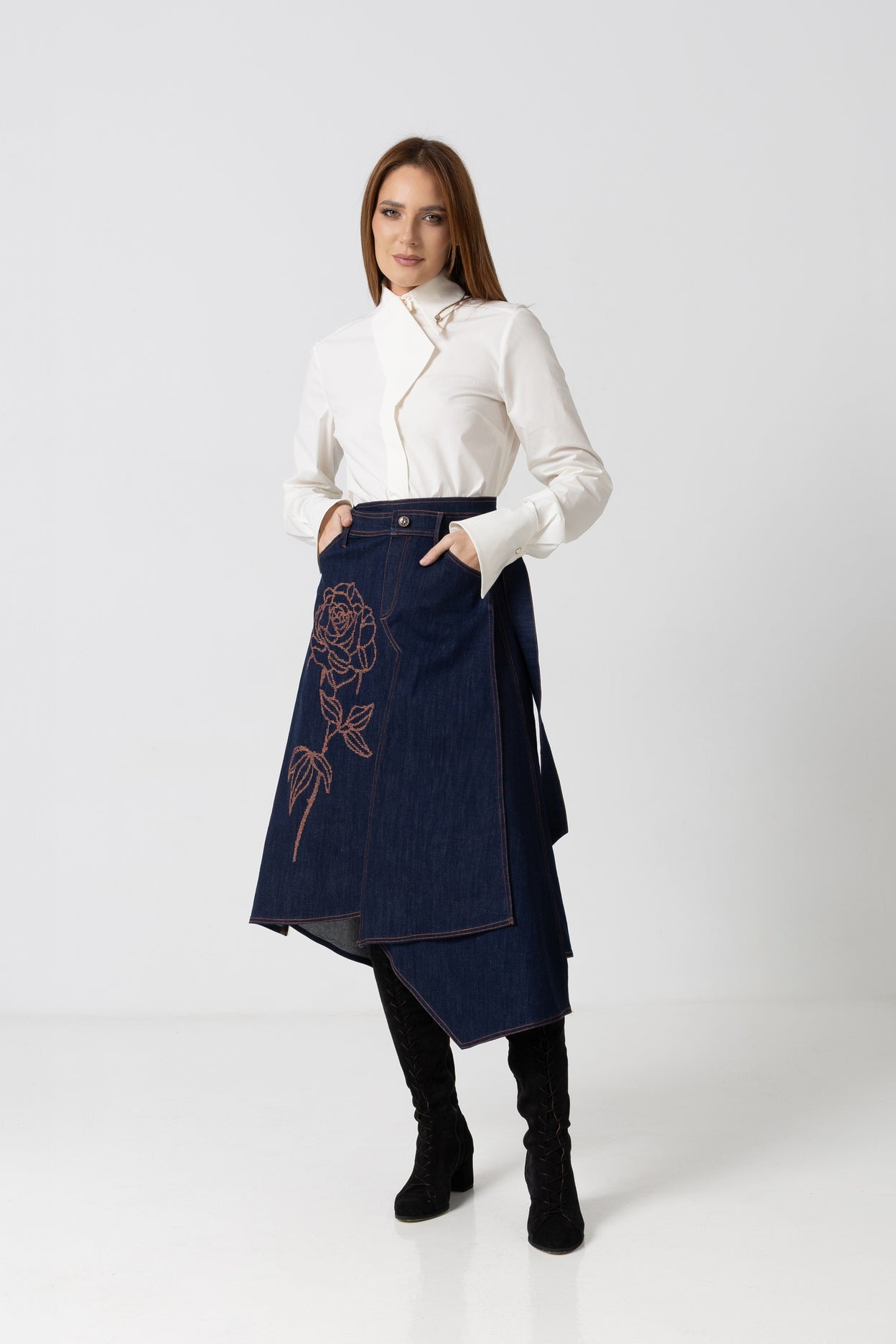 Wear this midi skirt to a daytime event, or even to the office if a formal outfit isn't required, accessorizing as needed with flats or heels and a silk shirt or designer blouse.