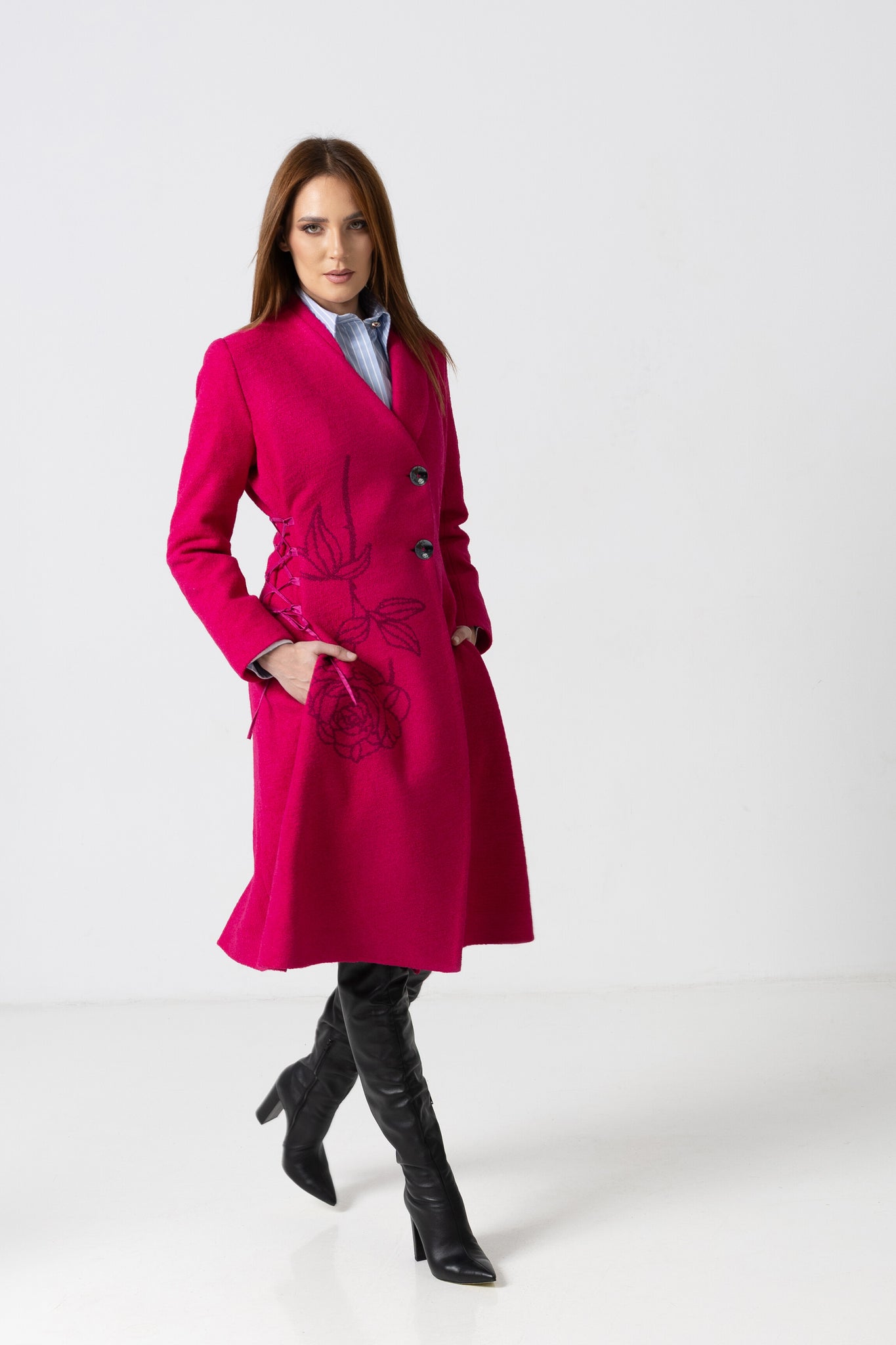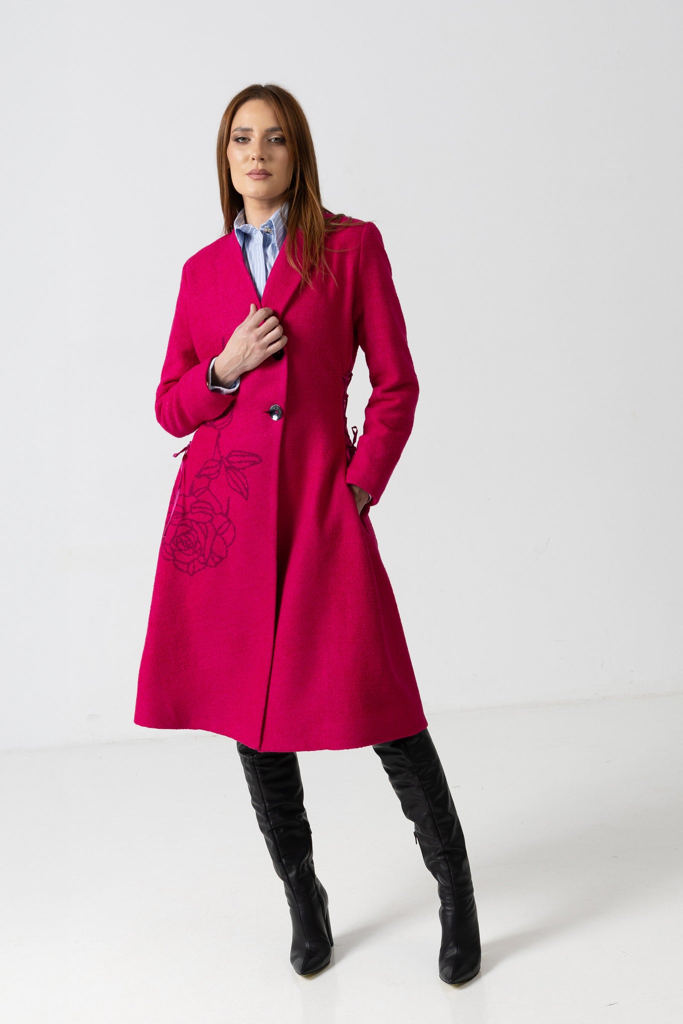 The waist is highlighted by a wide band, which gives extra structure and harmoniously emphasizes the body line. The slightly flared cut offers freedom of movement and an elegant look, making this skirt suitable for both traditional events and modernly reinterpreted outfits.