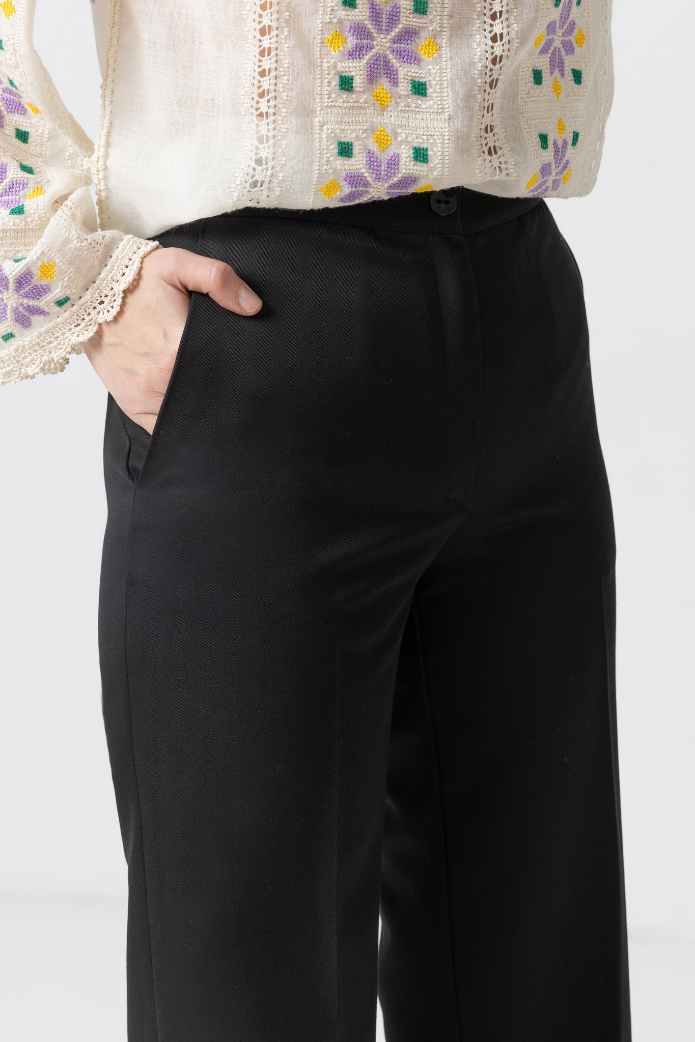 Crafted entirely from cotton, these trousers are the perfect choice for days when you want to feel comfortable yet look polished. The functional metallic button closure adds an elegant detail, perfectly complementing the modern lines of the design.