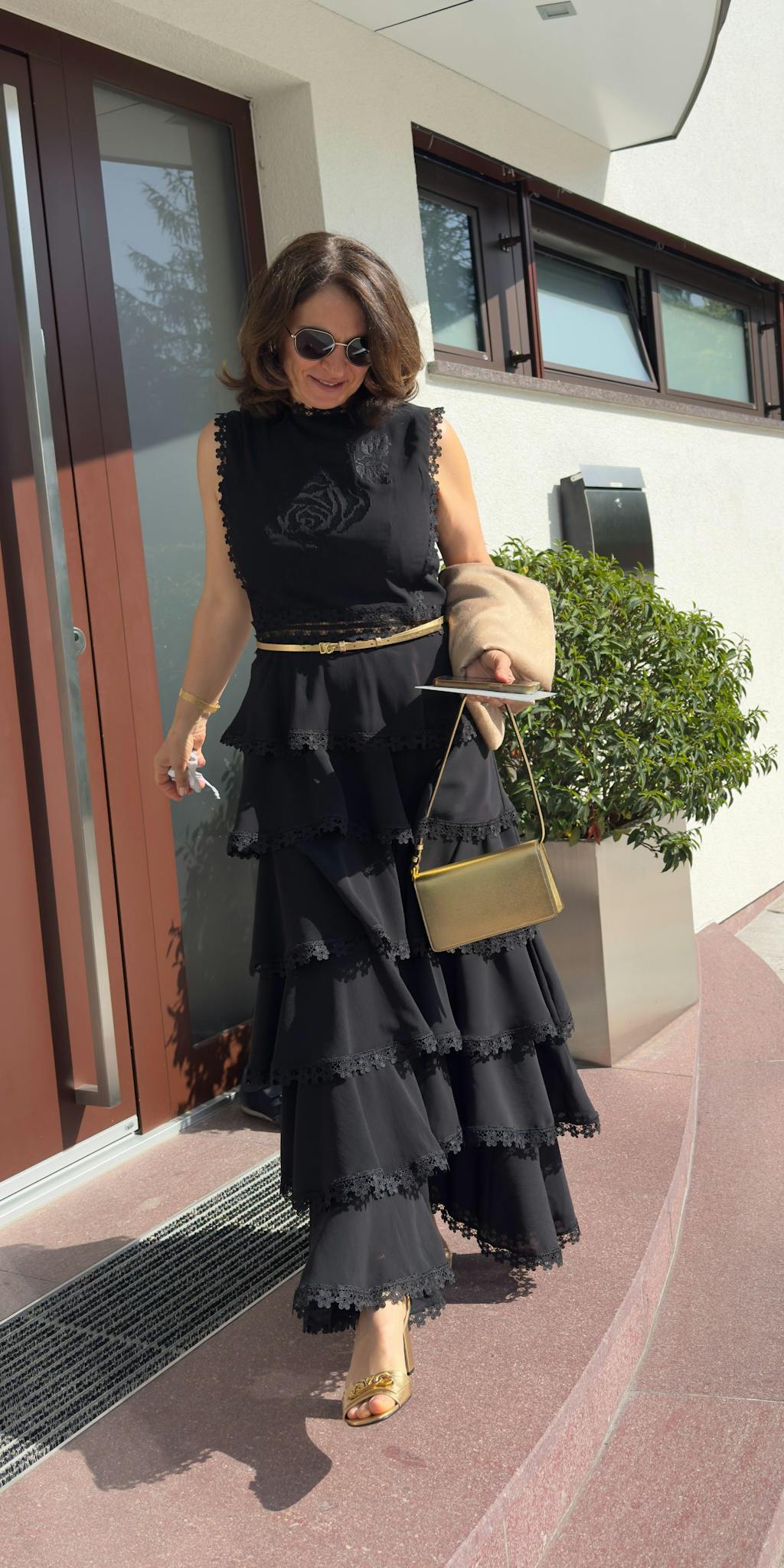 O rochie spectaculoasă realizată din vâscoză, cu volane diafane și aplicații macrame. Bustul este brodat cu un trandafir de culoare alb. Talia este evidențiată tot prin bandă macrame.